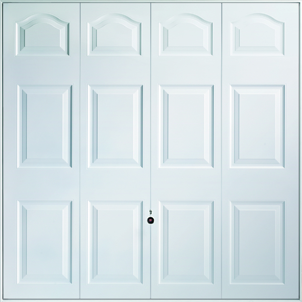 Canopy doors are the traditional garage doors that allow extra drive-through width, not achieved with the retractable door. This is because the lifting mechanism is contained above the door. The maximum size limit is 8ft x 7ft. Canopy doors are available in an electric garage door design, but require a “bow arm” which can make the door a little jumpy and reduce drive through height. If an electric up and over door is required, we recommend the retractable design. So at the quoting stage if we ask if you plan to make your door automatic in the future its not to up sell (we don’t do that) its to make sure you get the right door for the future too.